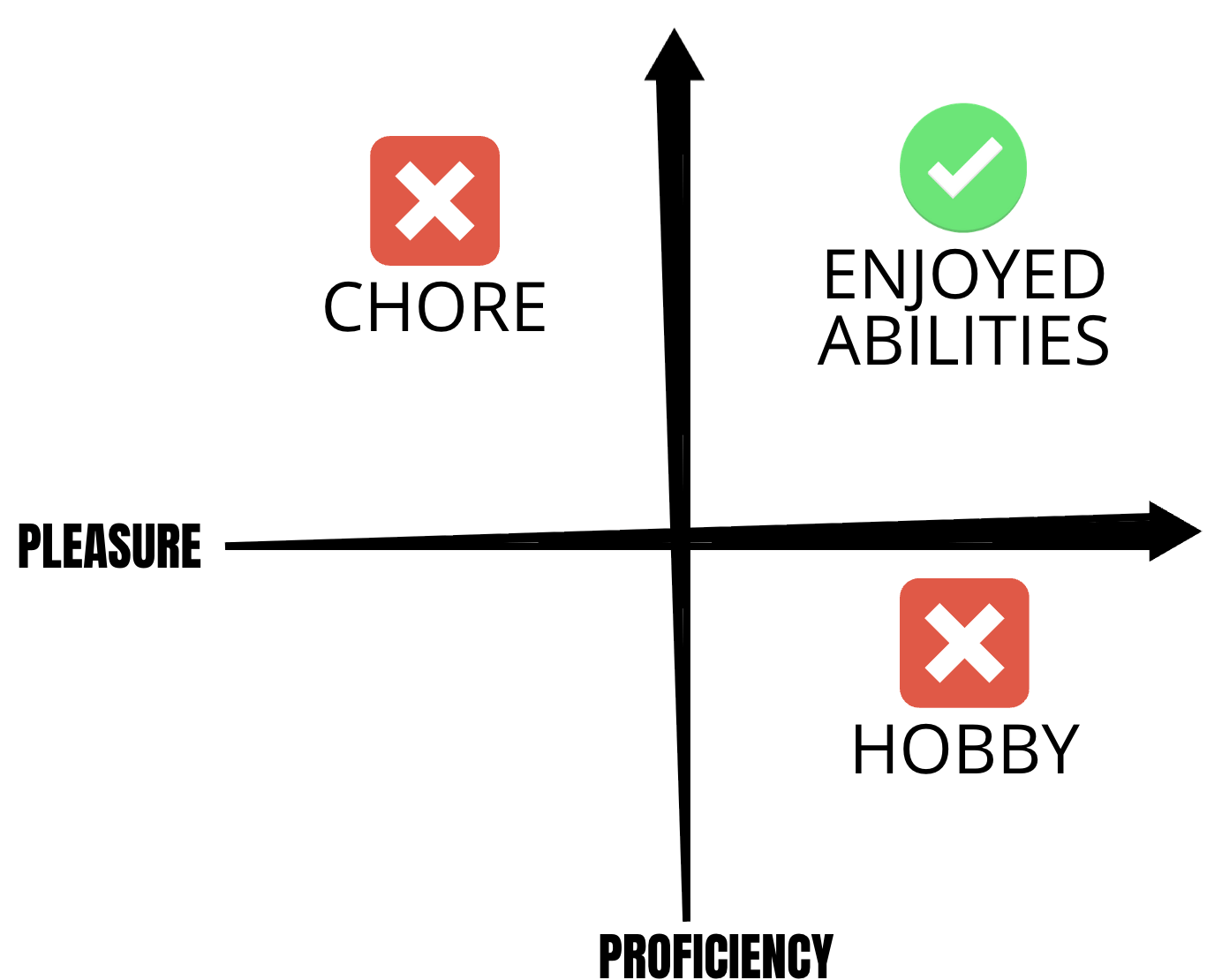 We all have things we’re really good at (proficiency) but don’t like doing (pleasure). We could call those chores.